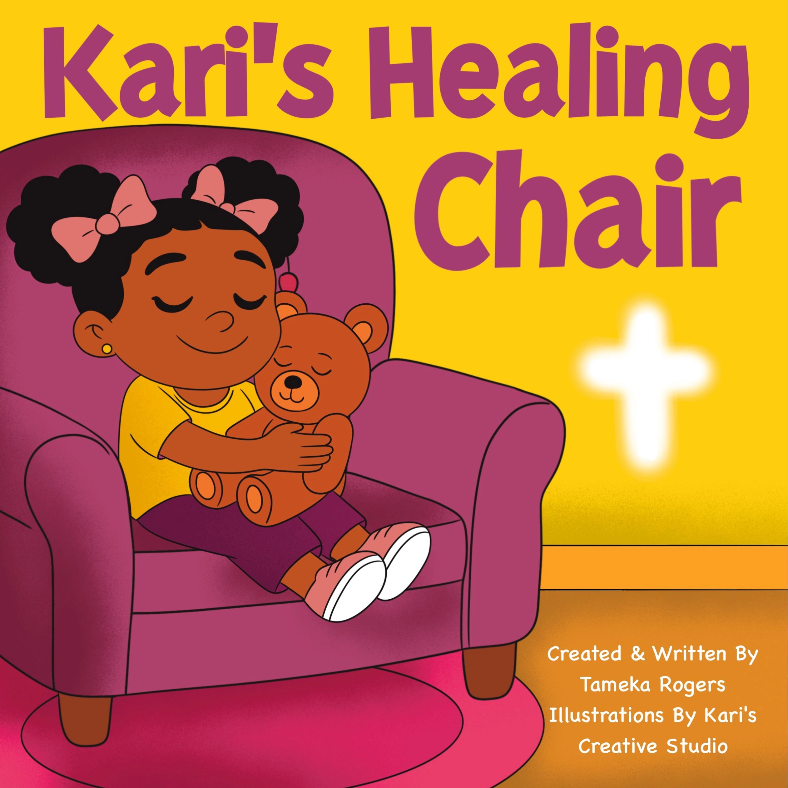 The story is about a little girl who discovers a special purple chair that becomes her safe space — a place where she can rest, pray, and feel God’s love.